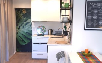 pokoju z balkonem, mini aneksu kuchennego i łazienki.