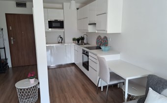 o powierzchni 32m, składające się z salonu połączonego z kuchnią, osobnej sypialni, łazienki i przedpokoju.