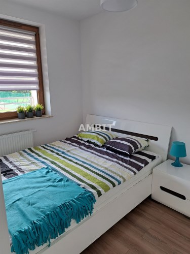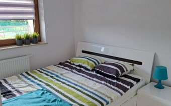 W sypialni jest duża, pojemna szafa, szerokie i wygodne 2 osobowe łóżko wraz z dwoma nocnymi stolikami.
