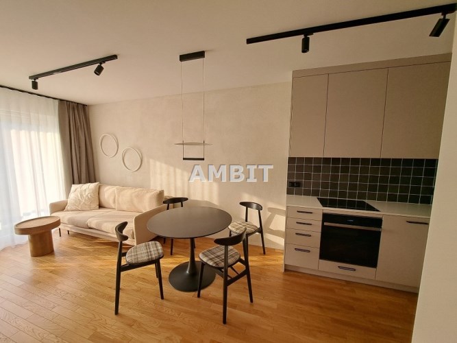 Salon i kuchnia z pełnym wyposażeniem - meble wraz ze sprzętem AGD, salon umeblowany, w sypialni podwójne łóżko z materacem, wbudowana szafa ubraniowa. W przedpokoju również wbudowana szafa, w pełni wyposażona łazienka łącznie ze sprzętem AGD.
